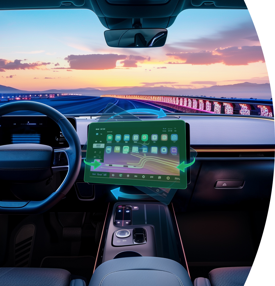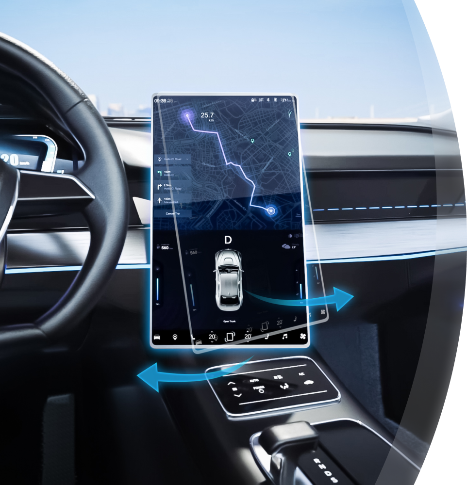 HJC黄金城官网两度自由中控屏执行器,从用户实际使用场景出发,以两套独立的驱动结构,实现中控屏幕0-90°的横竖旋转和左右各15°的偏摆旋转两组功能融合,更好的适应用户调整屏幕的方向,方便观看和操作。