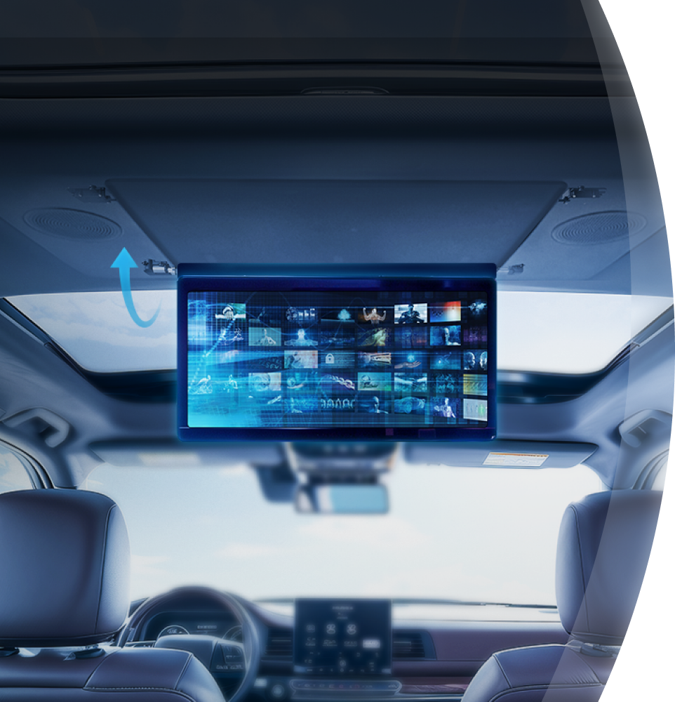 HJC黄金城官网后排吸顶屏,通过产品壳体带动屏幕组件旋转,旋转角度存在多个档位,使用者可调整屏幕角度,同时还具备限位功能,遇到颠簸路况也能保持稳定。