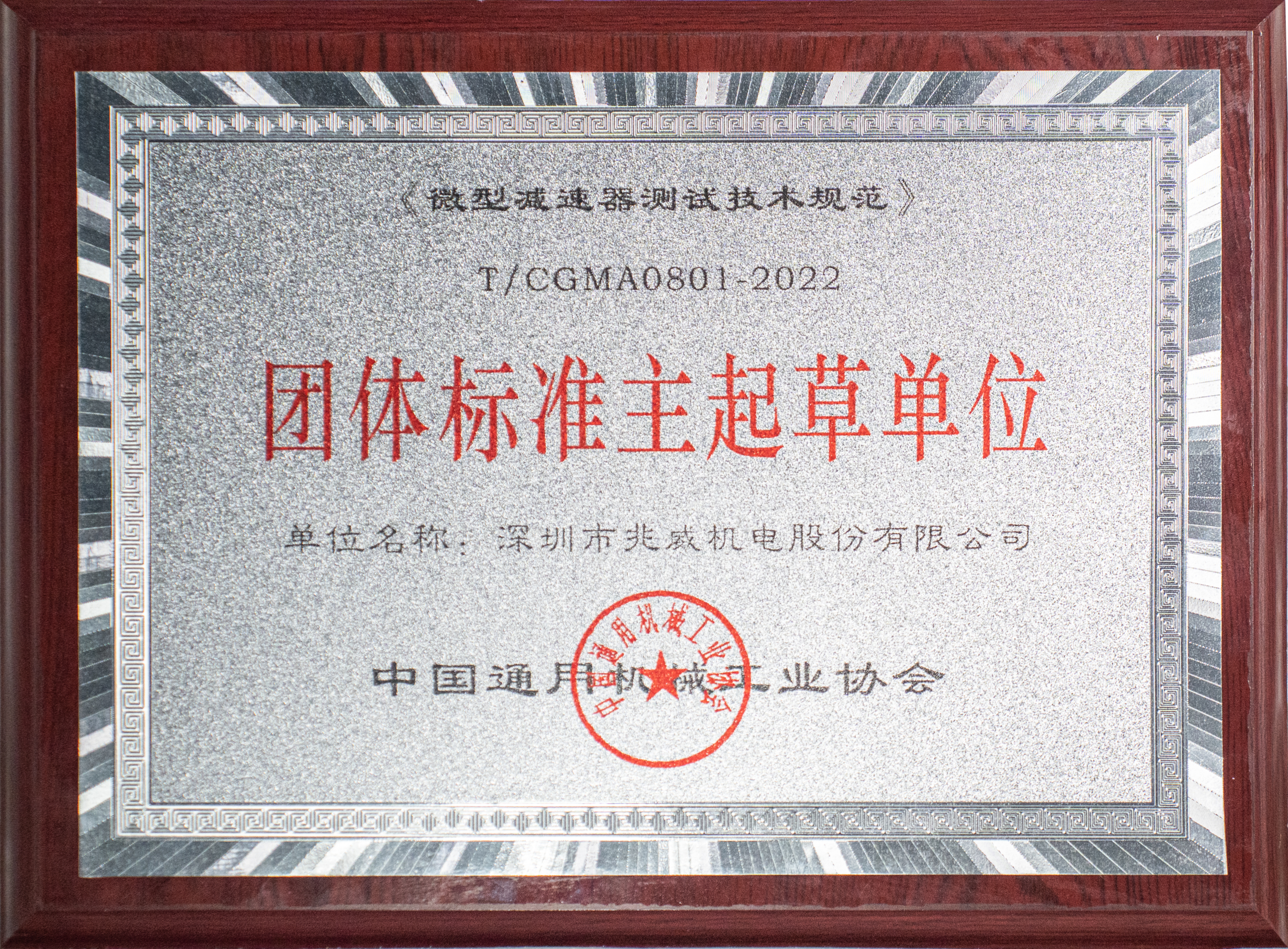 本次,HJC黄金城官网机电参加制定的标准为“微型减速器测试技术规范T/CGMA0801-2022”帮助推动行业技术进步,确保产品质量和安全性。而此“团体标准主起草单位”荣誉无疑是对公司长期以来在通用机械领域持续创新和卓越贡献的高度认可。